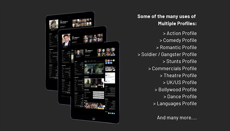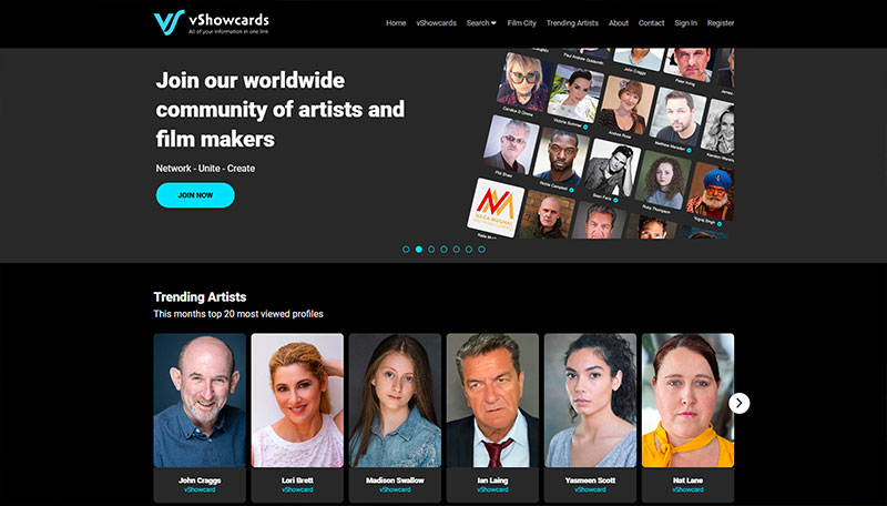 A vShowcard is the one-stop shop marketing tool for worldwide cast and crew that makes it easy for the casting professional to navigate all the information needed for them to cast or hire you. In under a minute, directors and producers get to know you and your work: they can see your talent, versatility, suitability, skills and experience far more deeply than is possible from just a self-tape or showreel or a written CV. vShowcards give the complete picture.